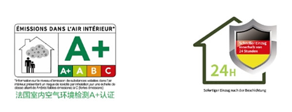 在追求美观的同时,阿尔贝娜蓝钻蛋壳光墙面漆也非常注重环保。产品包装上的“FREI VON绿色无添加科技产品”标识意味着这款墙面漆在生产过程中严格避免了VOC、甲醛、苯系物等有害物质的添加。它还通过了法国室内空气环境检测A+认证,确保了在使用过程中不会对室内环境造成污染,从而保障家人的健康。